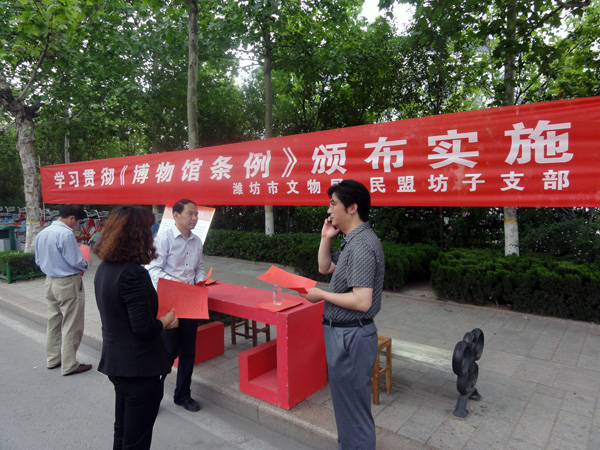 為進(jìn)一步普及博物館知識(shí),提高廣大人民群眾對(duì)博物館重要性的認(rèn)識(shí),增進(jìn)公眾對(duì)人類共同文化遺產(chǎn)的認(rèn)知和了解。5月18日,民盟濰坊坊子支部在第39個(gè)“國(guó)際博物館日”到來之際,在濰坊市博物館前舉行了形式多樣的宣傳活動(dòng)。