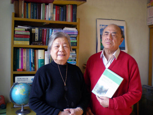 林育真教授(左)與老伴王永昌教授在自家書房