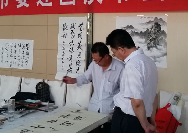 與會(huì)的藝術(shù)家們用他們手中的筆和墨寫出最能表達(dá)他們對(duì)中華人民共和國感情的文字,畫出我們美麗富饒的山山水水,畫出象征我國鳥語花香,歡聲笑語的花花草草,樹樹木木。描繪我們祖國的大好河山,用最有感情的作品歌唱我們偉大的祖國,歌唱我們偉大的黨,歌唱我們黨帶領(lǐng)全國人民取得的偉大成就,祝福我們偉大的祖國走向繁榮富強(qiáng)。