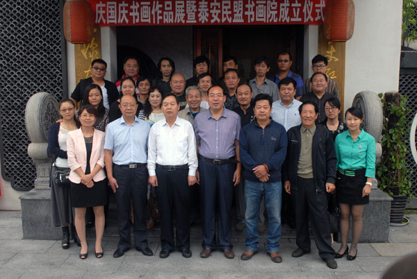 儀式由孫岱峰副主委主持。周杰主委代表民盟泰安市委致辭,對泰安民盟書畫院的成立表示祝賀,他指出,泰安民盟書畫院的成立充分發(fā)揮了民盟書畫藝術(shù)界成員的優(yōu)勢,通過組織多種內(nèi)容和形式的書畫作品交流活動繁榮泰安文化慈善事業(yè),對進(jìn)一步加強(qiáng)文化交流與合作,弘揚(yáng)書畫藝術(shù)及泰山文化,提升泰安的知名度和影響力,具有十分重要的意義。此次書畫作品展也是民盟藝術(shù)家們以藝術(shù)為載體,向新中國成立65周年的一次獻(xiàn)禮。