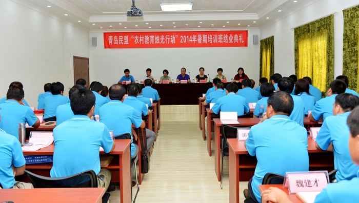 8月15日,民盟青島市委在國開教育集團(tuán)五樓培訓(xùn)中心舉行“農(nóng)村教育燭光行動(dòng)”2014年暑假培訓(xùn)班結(jié)業(yè)典禮。民盟青島市委駐會(huì)副主委江玉民,副秘書長(zhǎng)林于濱,中共青島城陽區(qū)委統(tǒng)戰(zhàn)部副部長(zhǎng)、民族宗教事務(wù)局局長(zhǎng)張春燕,民盟城陽區(qū)工委常務(wù)副主委、城陽區(qū)教體局副局長(zhǎng)張瑞巖,民盟市北區(qū)工委副主委、國開教育集團(tuán)董事長(zhǎng)王魯剛,青島市華泰公益基金會(huì)秘書長(zhǎng)潘元一等領(lǐng)導(dǎo)出席結(jié)業(yè)典禮。41名來自甘肅平?jīng)鋈A亭縣、定西岷縣、武威古浪縣、張掖市、酒泉市和山東德州武城縣的農(nóng)村學(xué)校受訓(xùn)校長(zhǎng)參加了結(jié)業(yè)典禮。王魯剛主持結(jié)業(yè)典禮。