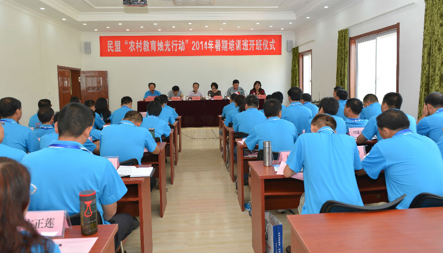 8月4日,青島民盟舉行“農(nóng)村教育燭光行動”2014年暑假培訓(xùn)班開班儀式在國開教育集團(tuán)五樓培訓(xùn)中心舉行。民盟青島市委副秘書長林于濱、,民盟青島城陽區(qū)工委主委、青島技佳電子有限公司總經(jīng)理、青島安奧克斯湯姆遜(青島)游艇有限公司總經(jīng)理趙家檜、,民盟青島市北區(qū)工委副主委、國開集團(tuán)董事長王魯剛、,青島華泰公益基金會秘書長潘元一、,中共青島城陽區(qū)委統(tǒng)戰(zhàn)部辦公室主任王濤出席儀式。41名山東和甘肅農(nóng)村學(xué)校校長參加了開班儀式。儀式由民盟青島城陽區(qū)工委主委趙家檜主持。