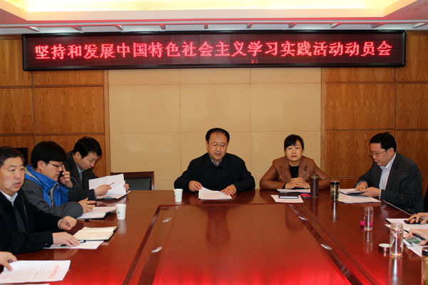 會議分兩個階段進行,第一階段傳達了民盟山東省委和中共市委統(tǒng)戰(zhàn)部關(guān)于開展堅持和發(fā)展中國特色社會主義學習實踐活動的相關(guān)文件,并對棗莊民盟活動的開展提出了具體的安排部署;傳達了民盟山東省委關(guān)于開展基層組織建設(shè)年活動的通知,并要求落實該項活動要與貫徹我市主委、副主委、秘書長聯(lián)系支部制度,與我市的“創(chuàng)建活力支部”活動相結(jié)合,主委會班子成員要到所聯(lián)系的基層組織指導堅持和發(fā)展中國特色社會主義學習學習實踐活動的開展,并對基層組織建設(shè)情況進行調(diào)研,掌握情況,總結(jié)經(jīng)驗,寫出書面材料上交主委會。針對以上兩項工作,朱景宜要求全市盟組織和盟員要自覺加強中國特色社會主義和民盟優(yōu)良傳統(tǒng)的學習教育,進一步凝聚政治共識,鞏固政治道路認同、奮斗目標認同、文化價值認同,緊密結(jié)合重點工作,不斷增強棗莊民盟組織的凝聚力、戰(zhàn)斗力和影響力。把活動廣泛深入的開展下去,把活動成效體現(xiàn)到履職上來。