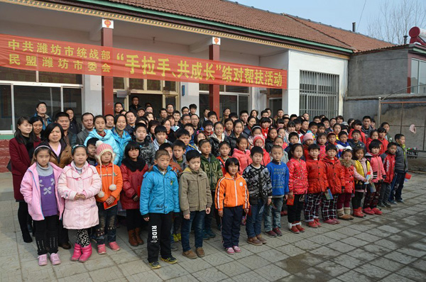 為了切實(shí)幫助解決山區(qū)學(xué)生在思想、學(xué)習(xí)、生活等方面的困難,努力讓每個(gè)山區(qū)學(xué)生健康、快樂(lè)成長(zhǎng),由中共濰坊市委統(tǒng)戰(zhàn)部、民盟濰坊市委主辦的“手拉手、共成長(zhǎng)”結(jié)對(duì)幫扶活動(dòng)于12月8日在臨朐縣沂山鎮(zhèn)長(zhǎng)命溝村舉行.濰坊民盟盟員攜子女及村內(nèi)中小學(xué)生近200人參加了活動(dòng)。中共濰坊市委統(tǒng)戰(zhàn)部副調(diào)研員許朋禮、民盟濰坊市委秘書長(zhǎng)白宗家參加了活動(dòng)。