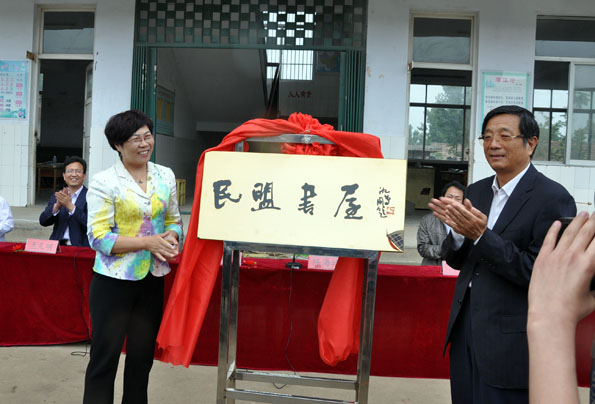 赴費(fèi)縣石井鎮(zhèn)板橋小學(xué)捐建“民盟書(shū)屋”