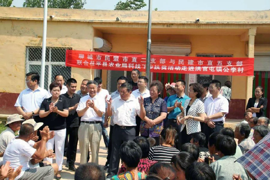 2016年6月27日,民盟聊城市市直二支部與民建聊城市市直五支部聯(lián)合茌平縣農(nóng)業(yè)局舉辦的科技下鄉(xiāng)扶貧及捐贈活動在茌平縣洪官屯公李村舉行。中共聊城市委常委、統(tǒng)戰(zhàn)部部長蔡同民,民盟聊城市委主委郝光華,民建聊城市委主委張廣霞,茌平縣人民政府縣長雷霞,民盟聊城市委秘書長李永軍,民盟聊城市市直二支部主委金平等出席活動。