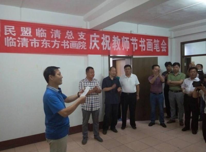 9月10日上午,民盟臨清市總支部在臨清市東方書(shū)畫(huà)院組織舉辦了慶祝教師節(jié)書(shū)畫(huà)筆會(huì)。民盟臨清總支副主委姚慶龍、閆鑄明及部分盟員和書(shū)畫(huà)家張長(zhǎng)峰、劉儒正等近30名知名書(shū)畫(huà)家參加活動(dòng)。活動(dòng)由支部副主委姚慶龍主持。