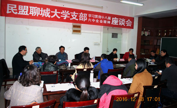 2016年12月18日,民盟聊城大學(xué)支部在聊城大學(xué)材料學(xué)院會(huì)議室召開(kāi)會(huì)議,學(xué)習(xí)貫徹中共十八屆六中全會(huì)精神,總結(jié)支部2016年工作。民盟聊城市委主委郝光華、秘書(shū)長(zhǎng)李永軍,中共聊城大學(xué)黨委統(tǒng)戰(zhàn)部部長(zhǎng)劉法力、科長(zhǎng)魏愛(ài)平出席會(huì)議。民盟聊城大學(xué)支部主委儀修杰主持會(huì)議。