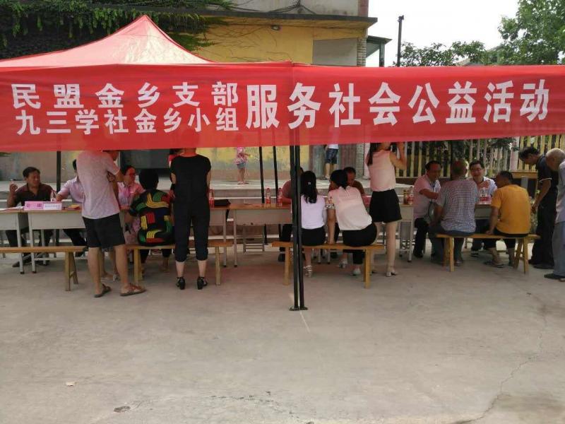 2017年7月1日,在中國共產(chǎn)黨建黨96年之際,民盟濟寧市金鄉(xiāng)支部聯(lián)合九三學社金鄉(xiāng)小組到金鄉(xiāng)縣卜集鎮(zhèn)李堂村、孫瓦房村、東門屯村、石廟村等開展健康義診、法律維權、科技下鄉(xiāng)、金融服務等公益活動。中共金鄉(xiāng)縣委常委、統(tǒng)戰(zhàn)部部長馬留再及統(tǒng)戰(zhàn)部領導班子成員,民盟金鄉(xiāng)縣支部主委張洪穩(wěn)及支部盟員馬忠超等參加活動。