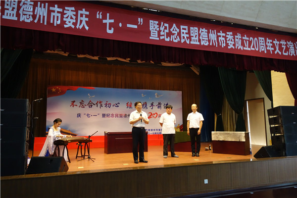 為慶!捌咭弧苯h節(jié),紀(jì)念民盟德州市委成立20周年,凝聚盟員思想共識(shí),引導(dǎo)廣大盟員,不忘多黨合作初心,進(jìn)一步履行好參政黨職能,民盟德州市委舉辦了“不忘合作初心,繼續(xù)攜手前進(jìn)”慶“七一”暨紀(jì)念民盟德州市委成立20周年文藝演出。德州市政協(xié)主席翟長(zhǎng)生,中共德州市委常委、統(tǒng)戰(zhàn)部部長(zhǎng)彭小毛,德州市人大常委會(huì)副主任陳璞平,德州市人民政府副市長(zhǎng)馬俊昀,德州市政協(xié)副主席、民盟市委主委康志民等現(xiàn)場(chǎng)觀看演出。近300名觀眾來到現(xiàn)場(chǎng)觀看了演出。