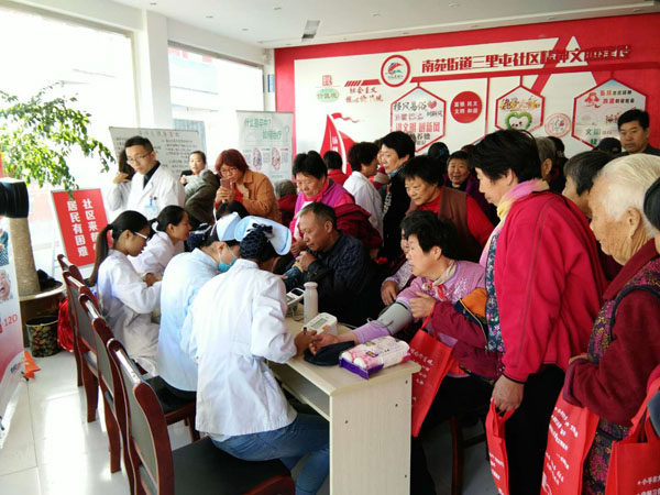 濟寧市第一人民醫(yī)院盟員中的醫(yī)療專家一行20余人來到任城區(qū)南苑街道三里屯社區(qū),開始了活動。民盟濟寧市委副主委兼秘書長劉曉穎同志、任城區(qū)政協(xié)副主席王為敬同志、任城區(qū)委統(tǒng)戰(zhàn)部副部長劉慶運同志以及任城區(qū)的部分盟員參加了活動。