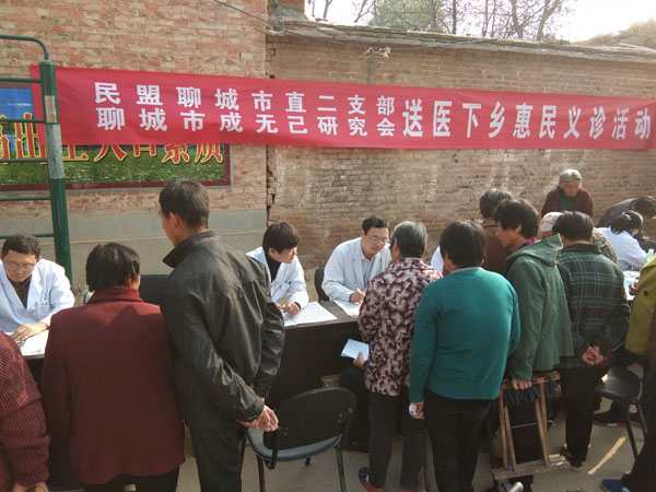 朱官屯村是聊城市委統(tǒng)戰(zhàn)部雙聯(lián)共建幫包貧困村,村中多為留守老人,由于存在年齡大、行動不便,兒女又不在身邊等諸多困難,很多老人身體不適只能自己到藥店買點(diǎn)止疼藥,非但花了冤枉錢還耽誤了病情。得知民盟聊城市直二支部、聊城市成無己研究會要在村里開展義診活動,村民們一大早就到村委排隊等候。義診服務(wù)活動中,以山東省著名中醫(yī)專家谷萬里為首的成無己研究會帶領(lǐng)神經(jīng)內(nèi)科、骨科、泌尿外科、婦科等科室的專家免費(fèi)給到場的村民號脈、量血壓、開處方,并對大家提出的問題進(jìn)行了耐心細(xì)致的解答,受到了當(dāng)?shù)厝罕姷臒崃覛g迎和一致好評。