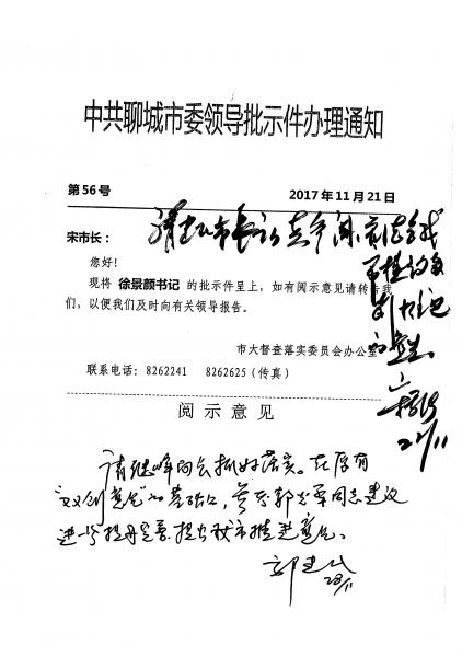 民盟聊城市委建議信獲聊城市主要領導批示