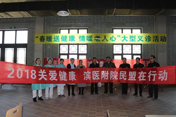 為踐行中共十九大精神,3月16日,民盟濱州市委和濱州醫(yī)學(xué)院附屬醫(yī)院聯(lián)合組織開展“2018關(guān)愛健康,民盟在行動(dòng)”送醫(yī)送溫暖活動(dòng),走進(jìn)博興縣京博老年社區(qū)為老年人進(jìn)行義診。