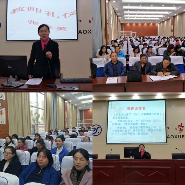 此次活動的主題是,民盟東昌府區(qū)六中支部主委、新區(qū)小學(xué)副校長張春英為聊城實(shí)驗(yàn)小學(xué)的老師們授課《教師禮儀》。張春英是山東省優(yōu)秀教師、聊城市教學(xué)能手,她從禮儀的含義、教師的形象、教師的服飾、教師的語氣、教師的舉止、教師的情緒、社交禮儀等幾個方面進(jìn)行了詳細(xì)的介紹。全體教師全情投入,時而低頭筆記,時而昂首聽講。整場授課使在場老師們?nèi)玢宕猴L(fēng),大家紛紛表示,教師禮儀主題例會雖然拉下帷幕,但在教師禮儀的長路上,在教師的崗位上應(yīng)時刻表現(xiàn)出應(yīng)有的氣質(zhì)與風(fēng)度,注重自己的儀表和整體風(fēng)范,做一個知識淵博,風(fēng)度儒雅,舉止文明的新時代的人民教師。