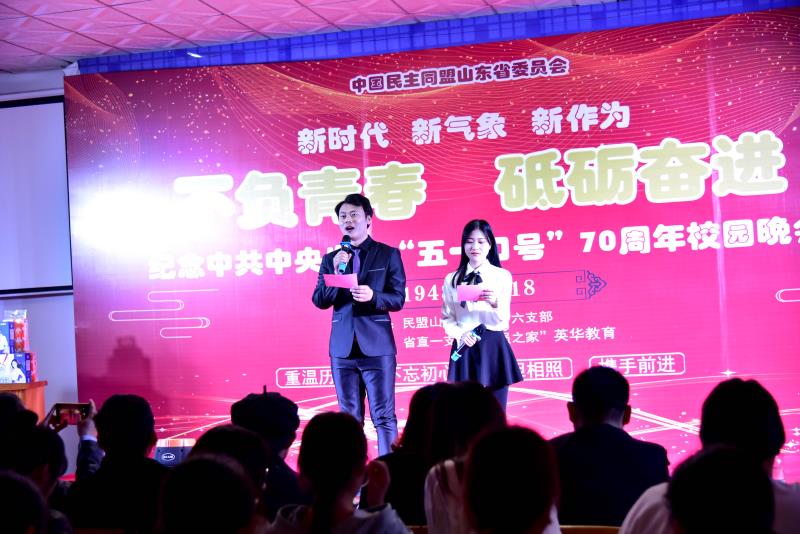 首先,召開了紀(jì)念“五一口號(hào)”70周年座談會(huì),支部全體盟員共同學(xué)習(xí)了中共中央發(fā)布“五一口號(hào)”的背景和意義,并結(jié)合自身的認(rèn)識(shí)理解、心得體會(huì)等進(jìn)行了交流發(fā)言。座談會(huì)后,在支部盟員之家——英華教育組織舉辦了以“重溫五一口號(hào),不忘合作初心”為主題的大學(xué)生校園晚會(huì)。通過晚會(huì)的形式,讓現(xiàn)場的300余名大學(xué)生深刻體悟習(xí)近平總書記重提“五一口號(hào)”的意義,進(jìn)一步增強(qiáng)“四個(gè)意識(shí)”,為實(shí)現(xiàn)中華民族偉大復(fù)興的中國夢而努力學(xué)習(xí)。