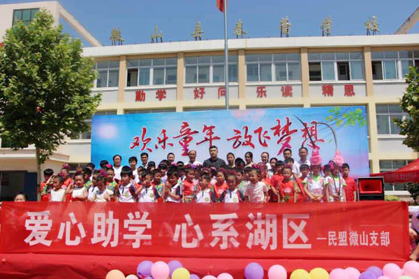 2018年5月31日,民盟濟寧微山支部主委韓冬,微山縣舞蹈家協(xié)會主席、偉偉舞蹈學校校長張偉,微山縣音樂家協(xié)會副主席沙洪濤等微山支部盟員來到微山湖中的微山縣春蕾小學參加“歡樂童年放飛夢想”慶六一文藝匯演,開展“心系湖區(qū)”愛心助學活動,同春蕾小學師生們一起歡度國際“六一”兒童節(jié)。
