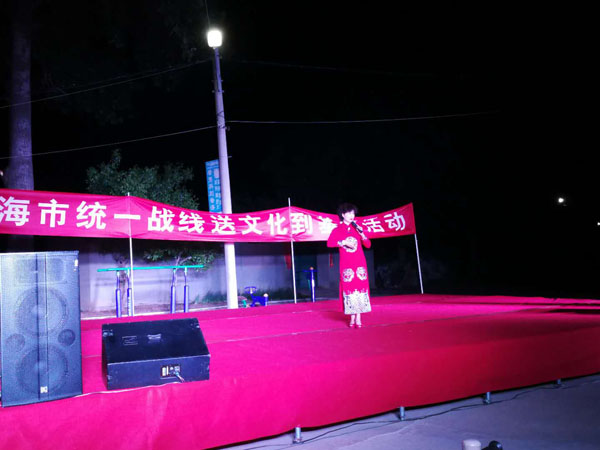 2018年6月12日晚,中共威海市委統(tǒng)戰(zhàn)部組織市黨外文化藝術(shù)工作者聯(lián)誼會(huì)成員到幫扶村臨港區(qū)山馬劉村演出。民盟威海市委副主委譚志剛、市直一支部副主委江培松、文藝支部副主委石恒聰、文藝支部委員侯興莉、盟員于水暖參與了活動(dòng)的組織和文藝演出。