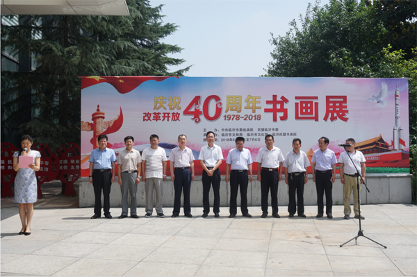 為了隆重紀(jì)念改革開放40周年,迎接偉大的中國共產(chǎn)黨第97個(gè)生日的到來,回顧不凡歷程,展望美好未來,由市委統(tǒng)戰(zhàn)部、民盟臨沂市委主辦,市文物局、市文化館、臨沂民盟書畫院承辦的“慶祝改革開放40周年書畫展”于2018年6月30日上午在臨沂市文化館一樓美術(shù)館開幕。