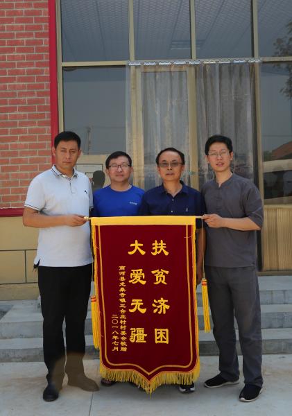 儀式上,翟樹剛介紹了“醫(yī)療精準(zhǔn)扶貧”項目的基本情況,王永剛書記在隨后的致辭中介紹了商河縣龍桑寺鎮(zhèn)鄉(xiāng)村建設(shè)和醫(yī)療衛(wèi)生情況,大力贊揚民盟組織“送醫(yī)下鄉(xiāng)”是扶貧濟困,助力振興鄉(xiāng)村建設(shè)的善行義舉,并向本次活動贈送了錦旗。濟南市亞健康防控協(xié)會秘書長張福全就“三伏貼”適應(yīng)癥及注意事項作了講解和具體說明。儀式結(jié)束后,隨行的醫(yī)護人員在現(xiàn)場為村民貼敷“三伏貼”,隨后又冒著酷暑,前往龍桑寺鎮(zhèn)敬老院為五保供養(yǎng)人員進行“三伏貼”貼敷。