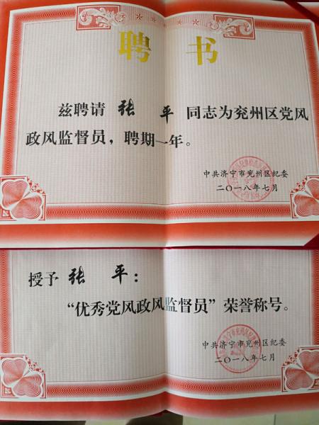 黨風(fēng)政風(fēng)監(jiān)督員制度所聘監(jiān)督員來自社會(huì)的各個(gè)層面,民盟兗州支部受聘的兩位盟員,在2017年擔(dān)任黨風(fēng)政風(fēng)監(jiān)督員一年的工作中,能夠服從大局、聽從指揮、認(rèn)真負(fù)責(zé)、敢于擔(dān)當(dāng),在區(qū)紀(jì)委領(lǐng)導(dǎo)下,積極參與明察暗訪、廉情宣傳、線索收集等相關(guān)工作,體現(xiàn)了民主黨派成員良好的政治素養(yǎng),取得了顯著的工作成績(jī)。鑒于兩位盟員在監(jiān)督員履職工作中的良好表現(xiàn),為繼續(xù)發(fā)揮民主黨派的民主監(jiān)督作用,兗州區(qū)紀(jì)委聘請(qǐng)兩位盟員在2018年繼續(xù)擔(dān)任區(qū)黨風(fēng)政風(fēng)監(jiān)督員。