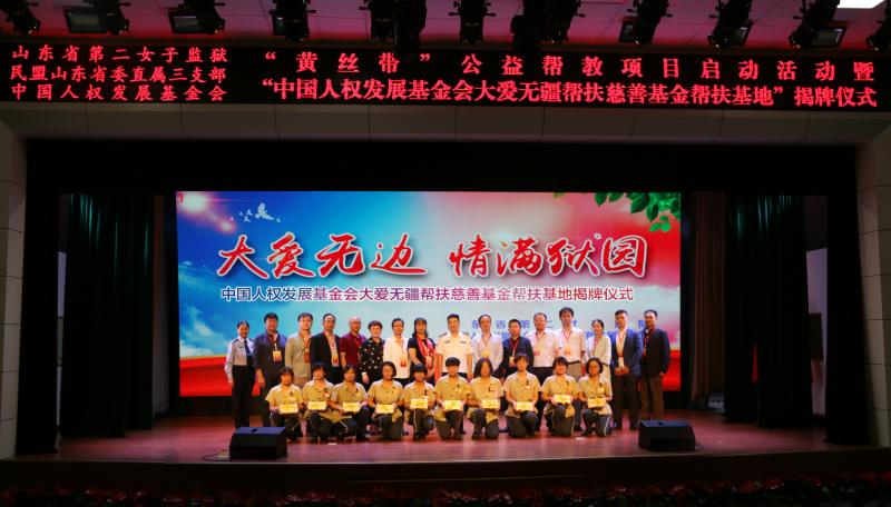 為充分發(fā)揮民盟的資源優(yōu)勢(shì),加強(qiáng)對(duì)服刑人員的關(guān)愛(ài)和幫扶,9月19日,民盟省直創(chuàng)業(yè)三支部“黃絲帶”公益幫教項(xiàng)目啟動(dòng)活動(dòng)暨“中國(guó)人權(quán)發(fā)展基金會(huì)大愛(ài)無(wú)疆幫扶慈善基金幫扶基地”揭牌儀式在省第二女子監(jiān)獄舉行。民盟省委參政議政(社會(huì)服務(wù))部副部長(zhǎng)徐濟(jì)生、二級(jí)調(diào)研員張霞,民盟省直創(chuàng)業(yè)三支部副主委畢曉紅等出席活動(dòng),山東中磁視訊股份有限公司等多家愛(ài)心企業(yè)應(yīng)邀參加。