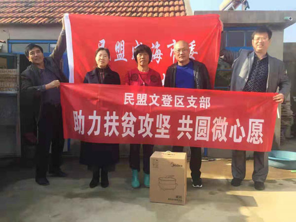 2018年11月14日上午,為積極推進(jìn)精準(zhǔn)扶貧工作深入開(kāi)展,充分發(fā)揚(yáng)愛(ài)心力量,滿足貧困戶的微心愿,增強(qiáng)盟員“關(guān)注扶貧、支持扶貧、參與扶貧”的意識(shí),在冬意漸濃之際,民盟威海文登支部盟員顏良、姜愛(ài)民、叢青代表參加“助力扶貧攻堅(jiān),共圓微心愿”活動(dòng),到澤庫(kù)鎮(zhèn)寨西村看望貧困戶。