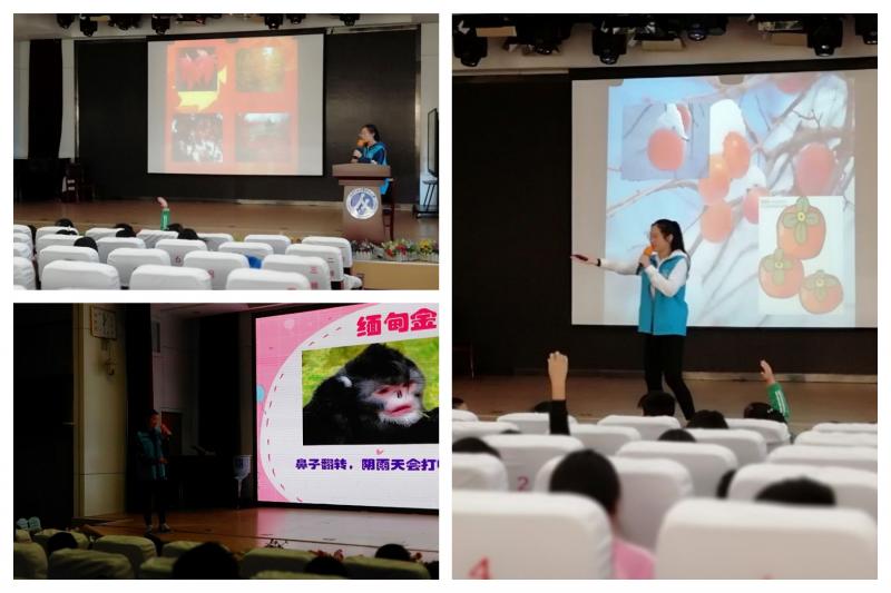 接著志愿者賀雨菲為同學(xué)們講解了植物的冬眠。“離離原上草,一歲一枯榮,野火燒不盡,春風(fēng)吹又生”,這些膾炙人口的詩句里又蘊(yùn)含著什么科學(xué)道理呢?同學(xué)們開動(dòng)腦筋認(rèn)真思考,根據(jù)自己平時(shí)觀察到的現(xiàn)象和知識儲(chǔ)備暢所欲言,氣氛熱烈。通過不同照片的展示和志愿者的講解,同學(xué)們認(rèn)識了不同冬眠、夏眠植物及其冬眠、夏眠的方式。最后本次講堂以"我們能為冬眠的植物做些什么"的問題結(jié)束,不僅為同學(xué)們帶來了科普的理論知識,更呼吁同學(xué)們用自己的力量愛護(hù)大自然。