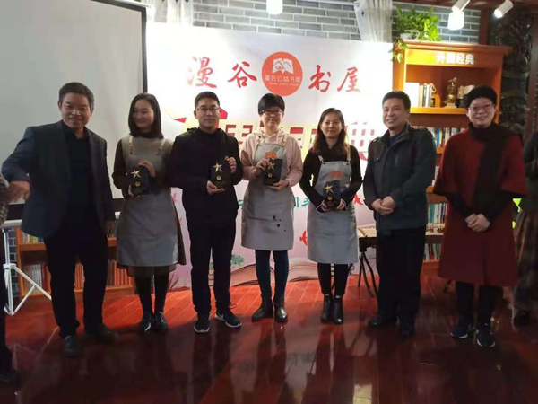 2018年12月2日,民盟棗莊市委“同心書屋”揭牌。在漫谷公益書屋一周年慶典之際,民盟市委牽手“漫谷書屋”共同掛牌成立“同心書屋”。民盟棗莊市委副主委孫允寶代表民盟市委為書屋捐贈書款,民盟棗莊市委秘書長王宜友為書屋揭牌,共同向優(yōu)秀志愿者代表頒獎,向優(yōu)秀小讀者頒發(fā)了“閱讀之星”獎牌。