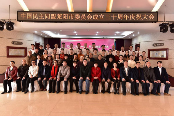 2018年12月16日,民盟煙臺萊陽市委在麗都山莊舉行成立三十周年慶祝大會。煙臺市人大常委、民盟煙臺市委主委梁輝,中共萊陽市委常委、統(tǒng)戰(zhàn)部部長葛衛(wèi)華,萊陽市人大常委會副主任鄒常厚出席會議。萊陽市各民主黨派、山東省萊陽衛(wèi)生學校、煙臺市萊陽中心醫(yī)院、山東中醫(yī)藥高等專科學校及萊陽市住建局負責人等應邀參加慶;顒印C衩巳R陽市委主委劉愛玲致歡迎詞。大會由民盟萊陽市委副主委劉克浩主持。