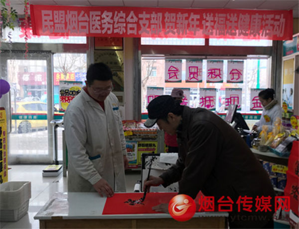 2019年1月11日,“迎新年,送對聯(lián)——民盟煙臺醫(yī)務(wù)綜合支部送福送健康”活動在燕喜堂崇文街3店和美信店店內(nèi)拉開帷幕;顒蝇F(xiàn)場邀請了書法家協(xié)會成員為煙臺市民寫春聯(lián),提前把濃濃的新春祝福送到群眾手中,讓人民群眾切實感受到民盟對煙臺人民的關(guān)心和溫暖。