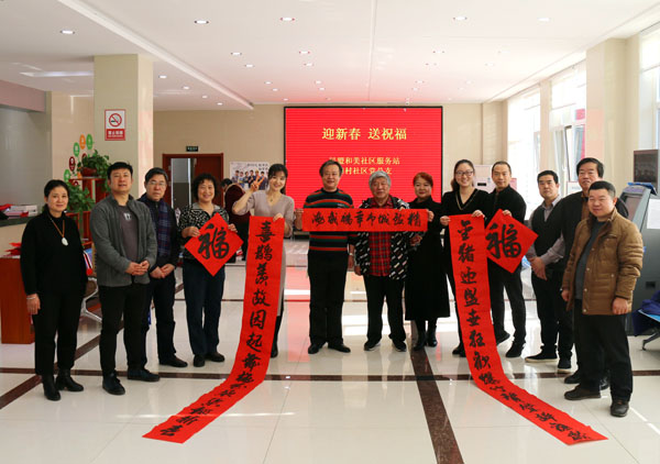 2019年1月22日上午,威海市高區(qū)田村社區(qū)黨群服務(wù)中心大廳格外熱鬧,民盟威海市委文化藝術(shù)專委會與威海民盟書畫院聯(lián)合組織的“迎新春,送祝!弊哌M社區(qū)寫春聯(lián)活動在這里舉行。10多位書畫家參與此次活動,現(xiàn)場共撰寫春聯(lián)300多幅,贈送剪紙作品20余件。