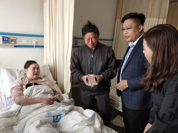 正當(dāng)一家人絕望之際,民盟淄川區(qū)基層委員會(huì)委員、山東金尚健康科技有限公司總經(jīng)理李哪了解到了丁元春一家的情況,他第一時(shí)間趕到醫(yī)院,找到醫(yī)生了解了病情和治療方案,探望了病床上的丁云春,并給與了6萬元捐助款,同時(shí)幫助其開展了水滴籌救助平臺(tái)捐助,目前已經(jīng)募集到了近3萬元,F(xiàn)在的丁元春經(jīng)過透析和穿刺手術(shù),病情開始好轉(zhuǎn),丁元春和家人也多次通過電話,向李哪表達(dá)了感激之情,丁元春表示,是這次的救助給了他又一次生命,感謝民盟培養(yǎng)了有責(zé)任的企業(yè)家。
