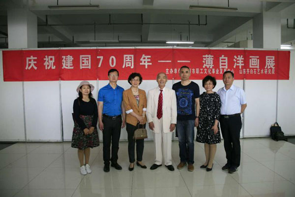 在習(xí)近平新時代中國特色社會主義思想指引下,為迎接祖國成立70周年華誕,濟(jì)南職工文化事業(yè)發(fā)展中心與山東齊白石藝術(shù)研究院于2019年5月18日聯(lián)合舉辦了《慶祝建國70周年——薄自洋畫展》活動。