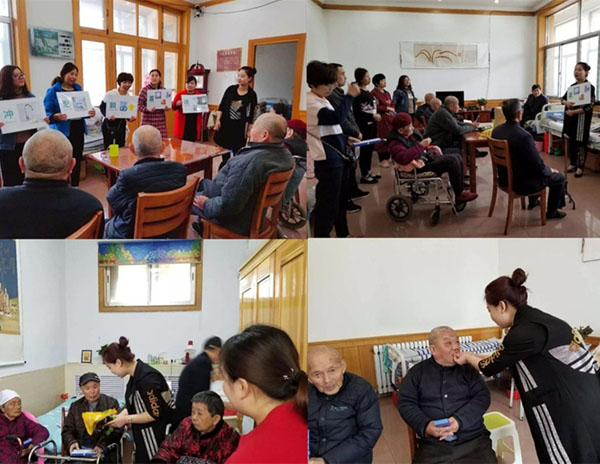呂曉菲首先給老人們講解了有關(guān)燒燙傷的知識(shí)以及燙傷后的急救措施。接著詳細(xì)介紹了“為什么需要先沖,又要怎么脫去衣服;什么傷情必須送往專(zhuān)業(yè)醫(yī)院救治;在日常生活中要怎么預(yù)防燒燙傷”等內(nèi)容,糾正以往抹牙膏、涂醬油等只會(huì)加重疼痛和加深創(chuàng)面深度的錯(cuò)誤民間經(jīng)驗(yàn),大家用心聽(tīng)著記著。期間,穿插給護(hù)工講解相關(guān)防范知識(shí)及應(yīng)急措施。講解完畢,又跟老人們進(jìn)行了互動(dòng),大家拿著意外燒燙傷急救措施的卡片故意站錯(cuò)位置,讓他們給讀出正確的急救順序。在護(hù)理人員的引導(dǎo)下,老人們指揮著大家排出每個(gè)字板正確的位置。隨后,給老人測(cè)血壓、血糖,并一一記錄,對(duì)于血壓、血糖有異常的給予健康飲食指導(dǎo)。最后,發(fā)放了餐具套盒(筷子、勺子)、開(kāi)胃的糖果、低糖的面包?曜、勺子能促使老人自己動(dòng)手,鍛煉大腦;開(kāi)胃的糖果能增進(jìn)他們的食欲;低糖面包是午間加餐。