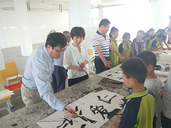 行楷隸篆,墨香滿園。在六一國際兒童節(jié)即將來臨之際,2019年5月27日,在民盟聊城市直經(jīng)濟技術(shù)開發(fā)區(qū)支部主委韓鳳萍等人的帶領(lǐng)下,民盟聊城市直經(jīng)濟技術(shù)開發(fā)區(qū)支部聯(lián)合開發(fā)區(qū)書畫協(xié)會舉辦了“迎六一”書畫進校園活動。盟員書畫家謝玉明、王春亮、宋西彬和盟外書畫家姜超、白立奎參加了本次活動。