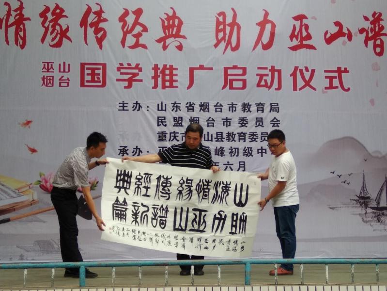 啟動(dòng)儀式上,民盟煙臺(tái)市委向官渡小學(xué)捐贈(zèng)了書(shū)法作品、并向巫山縣教育基金會(huì)捐贈(zèng)了3萬(wàn)元的國(guó)學(xué)推廣基金 。