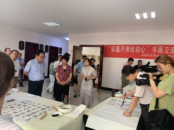 啟動儀式的同時,民盟環(huán)翠區(qū)支部舉辦的社區(qū)服務(wù)活動在海源社區(qū)同步開展,有關(guān)領(lǐng)導(dǎo)在許德勤的陪同下,參觀了此次活動,民盟環(huán)翠區(qū)支部副主委吳楠介紹了活動開展情況。在社區(qū)活動中心,舉辦了“筆墨丹青繪初心”迎建國七十周年書畫交流活動,盟員、環(huán)翠區(qū)書法家協(xié)會常務(wù)副主席、觀海樓美術(shù)館藝術(shù)總監(jiān)王建波和海源社區(qū)黨員、秋色賦藝術(shù)館館長柏榮椿等愛好書法的居民交流心得,現(xiàn)場創(chuàng)作書法作品,暢談創(chuàng)作體會,豐富社區(qū)居民精神文化生活。盟員區(qū)市場監(jiān)管局鯨園所副所長孫曉偉結(jié)合具體案例,講解消費(fèi)風(fēng)險警示、保健品消費(fèi)、警惕會銷和非法集資等方面的知識,提高社區(qū)居民防騙意識和消費(fèi)者權(quán)益保護(hù)能力。