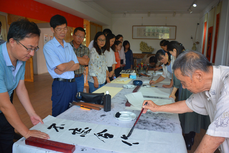 9月17日,民盟日照市委慶祝新中國成立70周年暨建市30周年書畫筆會在大觀書院三樓書畫室舉行。市委主委胡尊良、市委統(tǒng)戰(zhàn)部黨派非黨知識分子科科長徐國防出席活動,F(xiàn)年85歲的老盟員、日照畫院原常務(wù)副院長姜元正到場創(chuàng)作。
