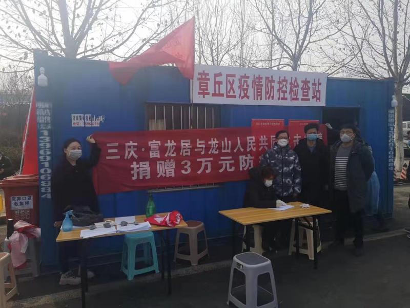 三慶·富龍居項目部物資捐獻籌備組員工跟隨街道辦事處劉晨信主任來到章丘區(qū)疫情防控檢查站,給堅守在疫情防控一線的街道工作人員送去溫暖和關(guān)愛。
