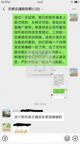 王睿主要負責濟南市天橋區(qū)兩個高速路口和兩條國道口所有進城車輛和人員的檢測,要求24小時不間斷盯守和百分之百的準確率,每天需要逐車逐人檢測近萬輛車。對于來自疫區(qū)的車輛和人員要逐一勸返或隔離,對從外省返回濟南的所有人登記并告知居家留觀14天。對運送物資進城的貨車要逐一登記,對濟南西客站和濟南機場返城的天橋轄區(qū)居民統(tǒng)一安排車輛送交相關辦事處接管。各個路口執(zhí)勤的在崗人員每天都超過150人,工作要求高,管理難度大。工作非常辛苦,考驗著每個人的耐心和毅力。從年三十晚上凌晨一點開始至今,王睿帶領天橋區(qū)交通聯(lián)防組累計檢測近20萬輛車、40多萬人。