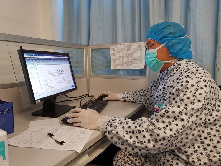柳主任在清潔區(qū)寫病歷處理醫(yī)囑