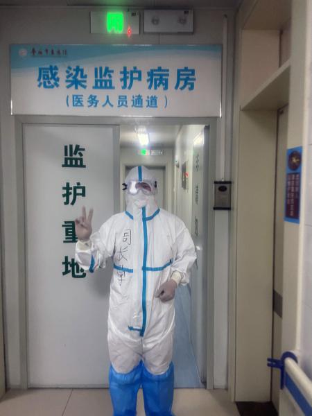 周長(zhǎng)學(xué),棗莊市立醫(yī)院腎內(nèi)及血液凈化科主治醫(yī)師。疫情初發(fā),他就做好了隨時(shí)上戰(zhàn)場(chǎng)的準(zhǔn)備。他積極自愿報(bào)名,第一時(shí)間參加穿脫防護(hù)服的培訓(xùn),第一批次順利通過(guò)考試。1月30日也就是大年初六,他接到醫(yī)院通知,到抗新冠肺炎一線工作。