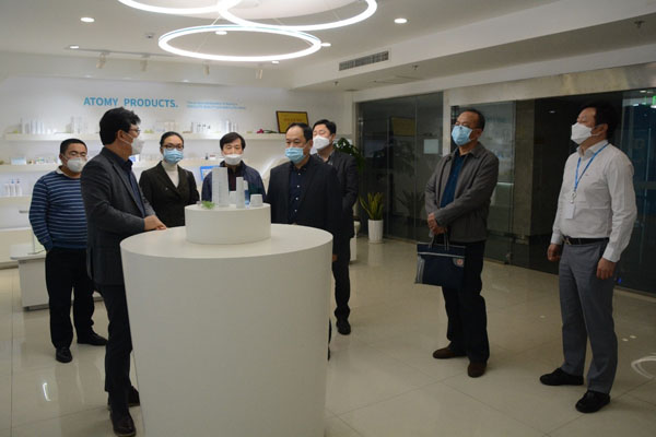 為貫徹落實(shí)煙臺(tái)市“雙招雙引”工作推進(jìn)會(huì)議精神,2020年4月15日下午,民盟煙臺(tái)市委調(diào)研組一行六人在市委副主委王瑞帶領(lǐng)下走訪了艾多美中國(guó)總部。艾多美總部CEO樸炳寬先生接待了調(diào)研團(tuán)。