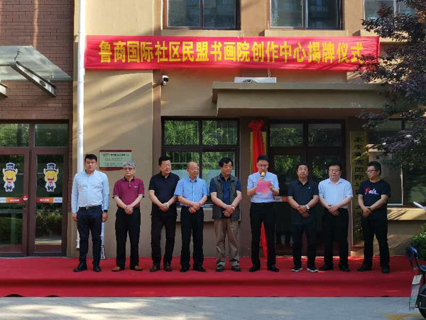 2020年5月28日,“泰安民盟書畫院創(chuàng)作中心”揭牌儀式在泰安魯商國際社區(qū)隆重舉行。泰安市政協(xié)副主席、民盟泰安市委主委孫岱峰,山東省畫院山水畫創(chuàng)作室賈榮志,泰安市作家協(xié)會、攝影家協(xié)會名譽主席胡立東,泰安魯商發(fā)展公司總經(jīng)理邵雷等領導及書畫藝術界同行出席儀式。民盟泰安市委秘書長徐建英主持活動。