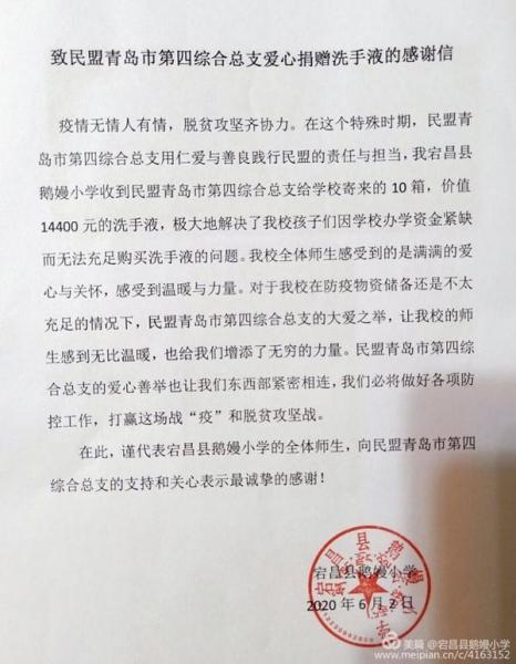 民盟青島市第四綜合總支定向捐助