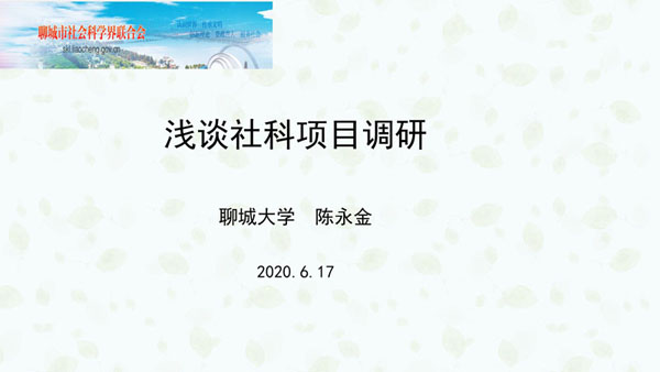 聊城市社科聯(lián)于2020年6月17日舉辦全市社會(huì)科學(xué)研究骨干培訓(xùn)班,民盟聊城大學(xué)委員會(huì)副主委、聊城大學(xué)環(huán)境與規(guī)劃學(xué)院副教授、聊城大學(xué)中國(guó)鄉(xiāng)村研究院鄉(xiāng)村生態(tài)振興中心主任陳永金作為兩位授課嘉賓之一,為參加培訓(xùn)人員作了如何開(kāi)展社科項(xiàng)目調(diào)研的報(bào)告。