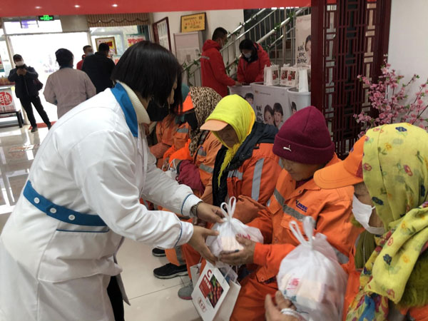 民盟煙臺(tái)醫(yī)務(wù)綜合支部盟員所在單位燕喜堂,將350多家門店全部設(shè)為環(huán)衛(wèi)工人的愛(ài)心驛站,紅紅的門頭映射的是寒冷冬日里溫暖的一顆愛(ài)心,店內(nèi)準(zhǔn)備環(huán)衛(wèi)工人歇腳處,免費(fèi)提供熱水飲用,如果環(huán)衛(wèi)工人有頭疼腦熱、拉肚子的癥狀,燕喜堂將免費(fèi)提供感冒消炎的常規(guī)藥品。有微波爐的門店為環(huán)衛(wèi)工人提供免費(fèi)的飯菜加熱等服務(wù)。除此之外,如果環(huán)衛(wèi)工人在清掃的過(guò)程中不小心受傷,燕喜堂還將免費(fèi)提供創(chuàng)可貼跟消毒包扎的服務(wù)。