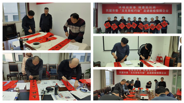 2021年1月31日,在新春佳節(jié)來臨之際,民盟德州市委會(huì)開展“送福迎新春·翰墨助抗疫”文化彩虹行動(dòng)走進(jìn)防疫物資保障企業(yè)活動(dòng),組織民盟書畫院書法家11人赴山東利爾康醫(yī)療科技股份有限公司,為企業(yè)職工送福送春聯(lián)。民盟德州市委副主委楊立新、秘書長張澤軍參加活動(dòng)。