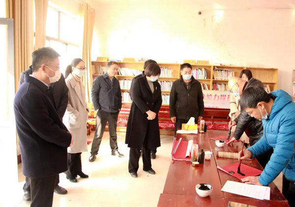 2021年2月2日,中共日照市東港區(qū)委統(tǒng)戰(zhàn)部、民盟東港區(qū)支部聯(lián)合到南湖鎮(zhèn)鳳凰莊村開展“揮毫寫春聯(lián),翰墨送祝!庇麓夯顒(dòng),繼承和發(fā)揚(yáng)中華優(yōu)秀傳統(tǒng)文化,營(yíng)造歡樂祥和的春節(jié)氛圍。全省“加強(qiáng)農(nóng)村基層黨組織建設(shè)”日照市東港區(qū)總隊(duì)隊(duì)長(zhǎng),中共菏澤醫(yī)學(xué)?茖W(xué)校黨委副書記、校長(zhǎng)顧潤(rùn)國(guó),中共東港區(qū)委常委、統(tǒng)戰(zhàn)部部長(zhǎng)趙慧,中共區(qū)委統(tǒng)戰(zhàn)部分管日常工作的副部長(zhǎng)葉小星,中共南湖鎮(zhèn)黨委副書記、鎮(zhèn)長(zhǎng)辛政,中共東港區(qū)委統(tǒng)戰(zhàn)部二級(jí)主任科員、民族宗教局局長(zhǎng)宋百柳,民盟東港區(qū)支部主委秦偉出席活動(dòng)。